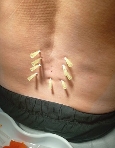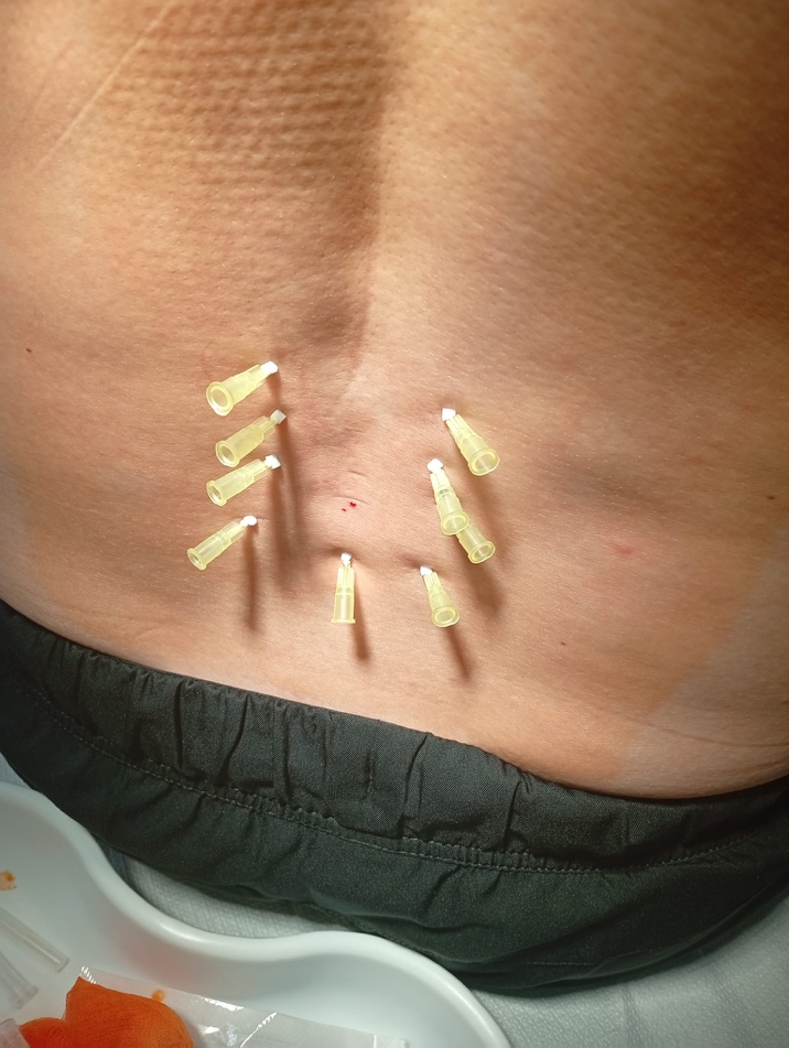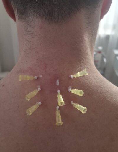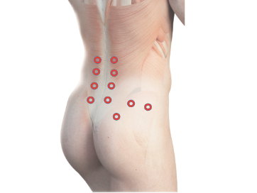 Nite aplikujeme symetricky po oboch stranách stavcov, čím uvoľňujeme hlboké svaly a stabilizujeme chrbticu.