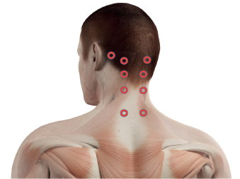 Aplikácia v oblasti prechodu lebky a krku zmierňuje chronické napätie.