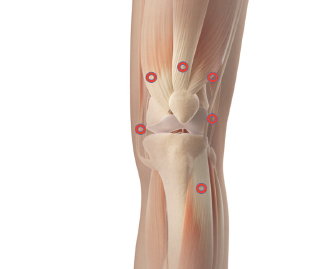 Vlákna zavádzame priamo k úponom svalov v okolí celého kolenného kĺbu.