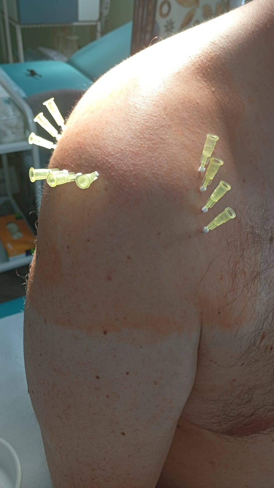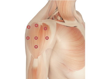 Ošetrenie pokrýva kľúčové svaly ramena a trapézu pod špecifickým uhlom pre maximálnu hybnosť.