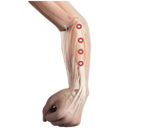 Nite smerujeme priamo k miestu najväčšej bolesti a pozdĺž šliach predlaktia.